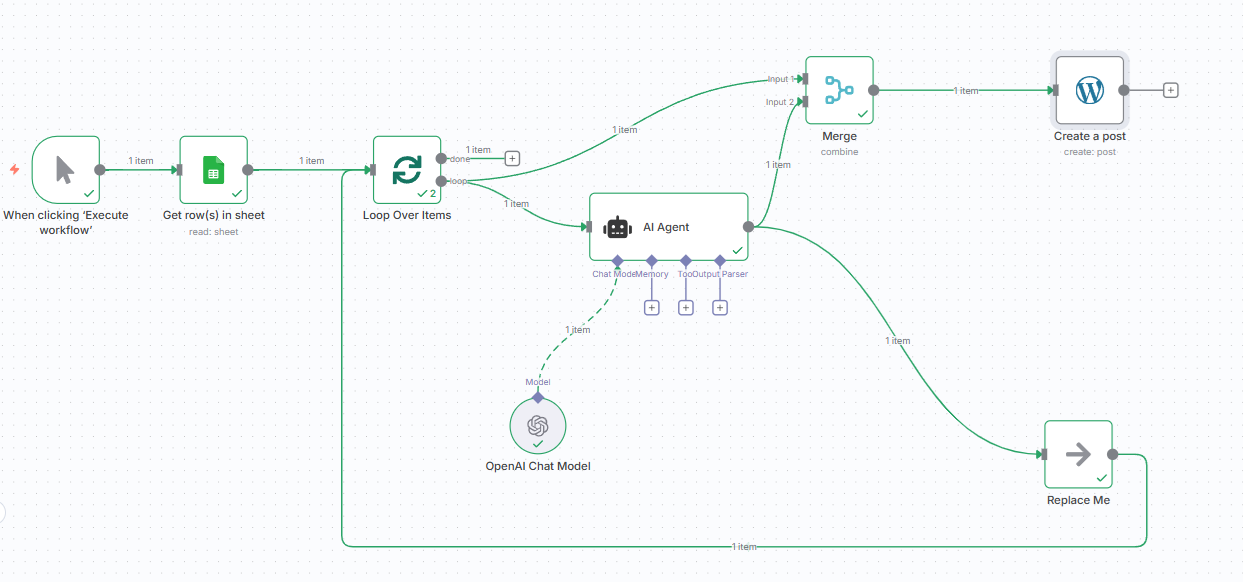 Workflow to automatically post content into the wordpress Blogs. You just need to provide titles and the automation will generate its own content to be posted into the wordpress blogs