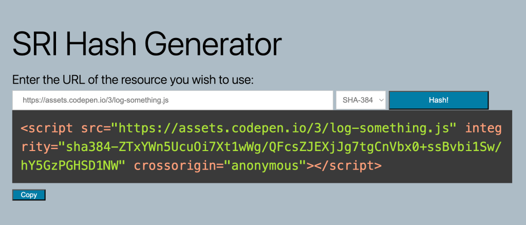 Very Easy | Shared Hosting / Quick Use | Paste the JS or CSS URL into the generator and copy the generated integrity hash. |