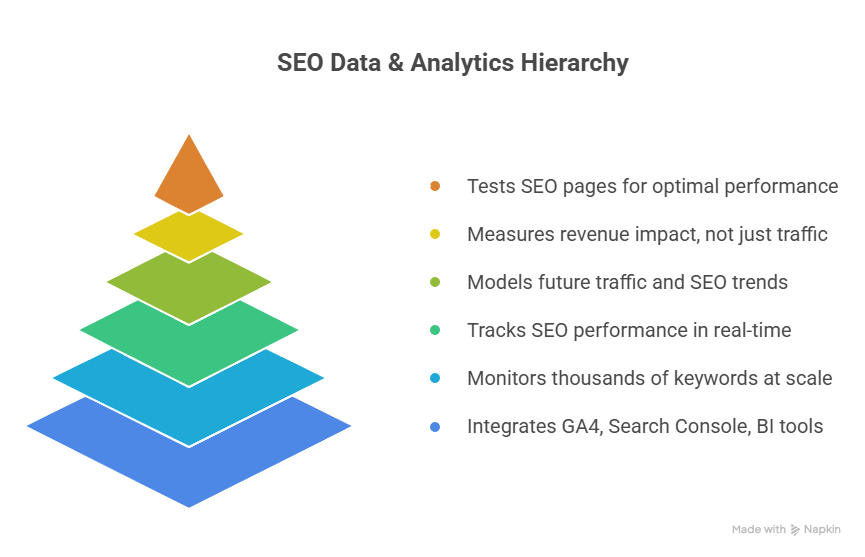 - GA4, Search Console, BI integration